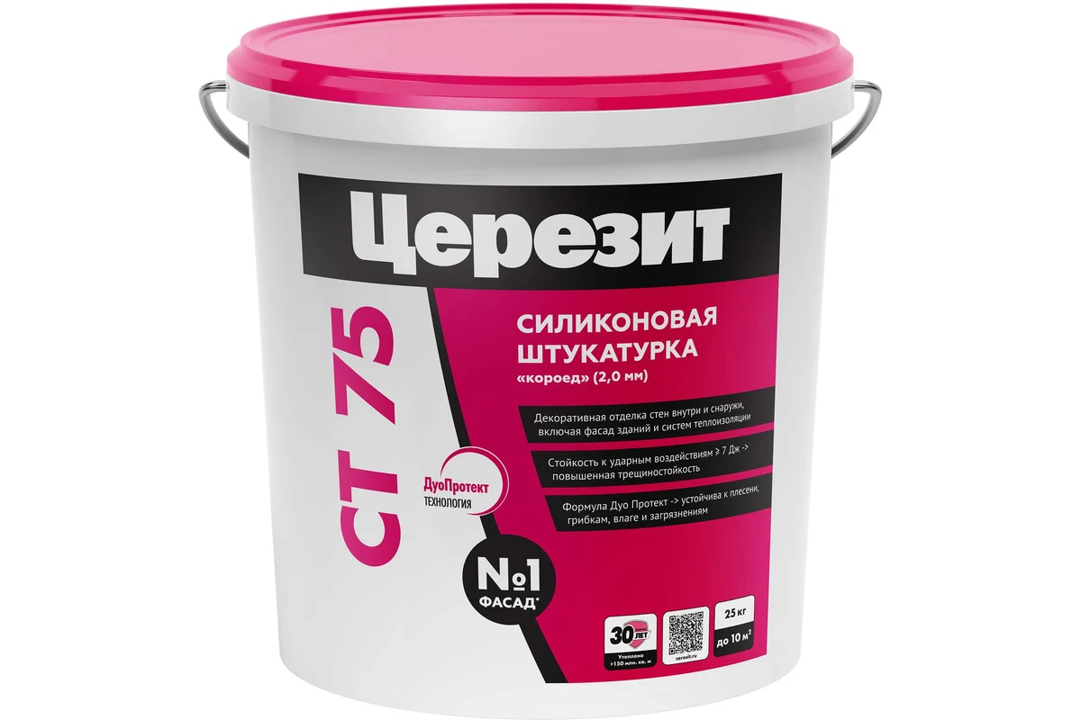 Рекомендована для систем фасадных теплоизоляционных композиционных (СФТК) с теплоизоляционным слоем из пенополистирольных (Церезит EPS) и минераловатных (Церезит WM) плит. Формула БиоПротект обеспечивает высокую стойкость штукатурки к грибкам и водорослям.