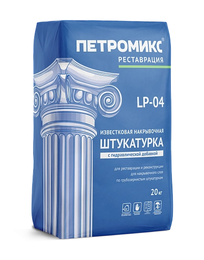 Штукатурка известковая накрывочная с гидравлической добавкой LP-04 ПЕТРОМИКС, 20 кг